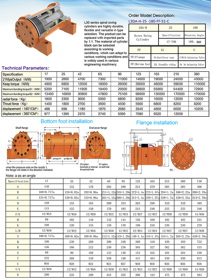 L30系列螺旋擺動油缸具有高度的經(jīng)久耐用,選型靈活通用,本產(chǎn)品與進口件可以1:1復(fù)換使用,并根據(jù)工況可以選擇缸體材質(zhì),適應(yīng)各種工況條件。